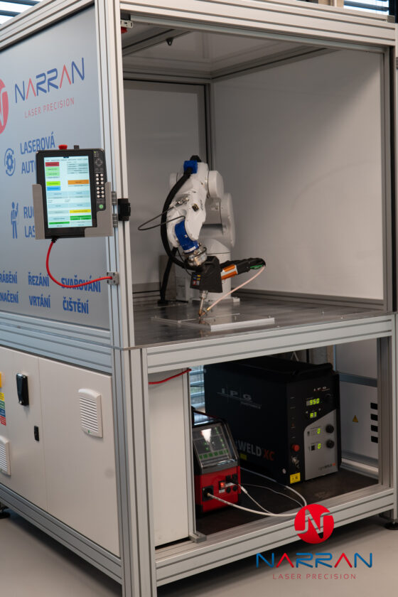 Narran Laser Welding Cobot představuje novou éru automatizace procesu laserového svařování, která integruje špičkové technologie a robustní bezpečnostní řešení. Kombinace precizní laserové svářečky IPG Lightweld XC, pokročilého řídicího systému EPSON TP4 s intuitivním teach pendant, force sensorů a systému zpětné vazby EPSON S250P umožňuje dosažení vysoké přesnosti, opakovatelnosti a kvality svarových spojů. Díky modernímu designu, který zahrnuje bezpečný průzor pro monitoring procesu, robustní ocelovou desku s možností usazení kopyt, dvoukanálové interlock zámky, e-stop tlačítka a efektivní odtah splodin, je tato buňka připravena čelit nárokům moderní výroby a poskytovat konkurenční výhodu v různých průmyslových aplikacích.